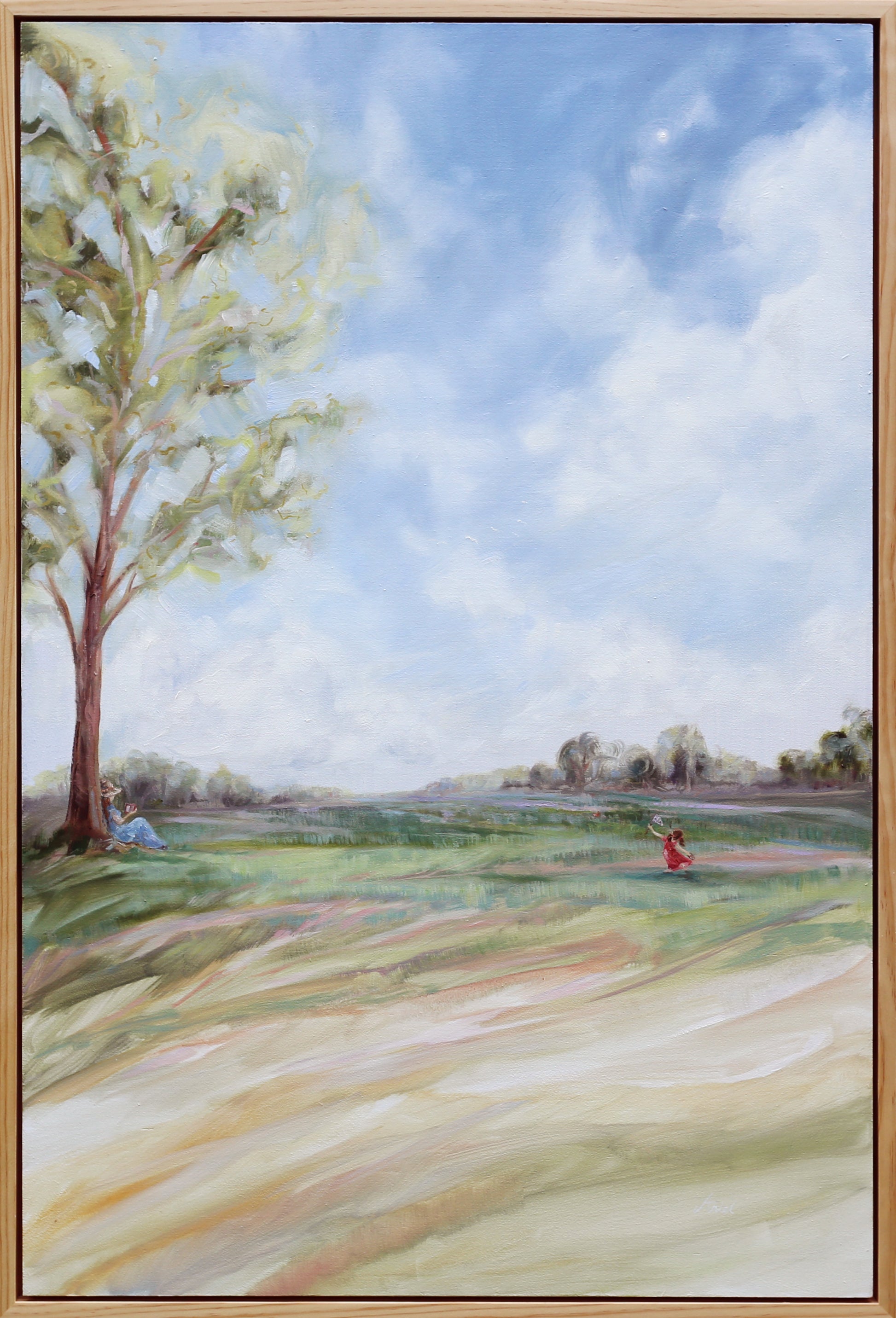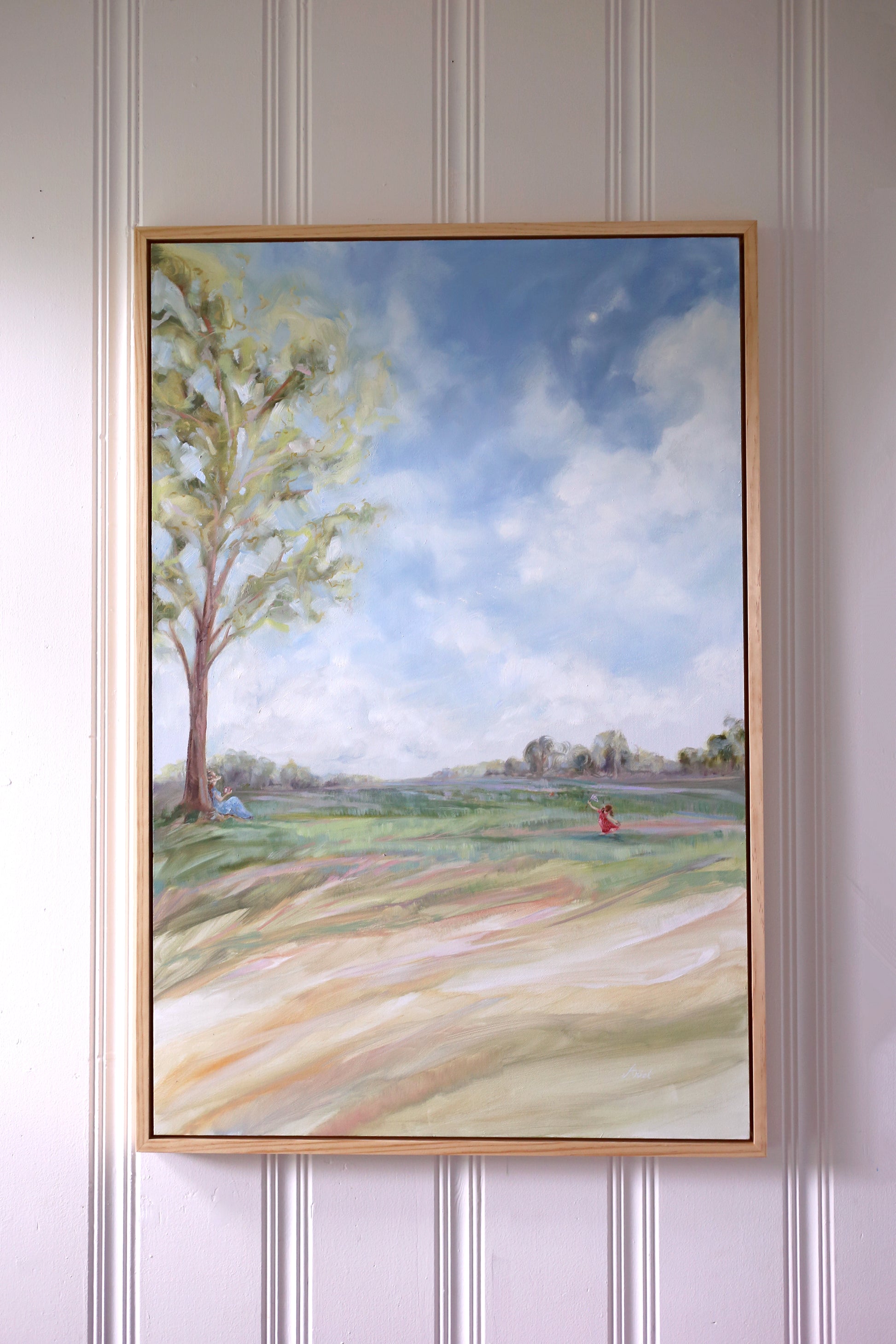 This piece comes with a sealed natural pine, floater frame, hand-crafted in studio. Total size of piece including frame is 25 ¼” x 37 ¼”.
